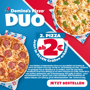 Schon gewusst? Werde Mitglied im Domino‘s Club, sammle Punkte und erhalte eine Gratispizza oder downloade unsere neue App, um flexible von überall deine Lieblingspizza zu bestellen. Hast du Fragen zu unseren Pizzen, zum Bestellvorgang oder Lieferoptionen? Dann findest du in unseren FAQs alle Antworten zu deinen Fragen.