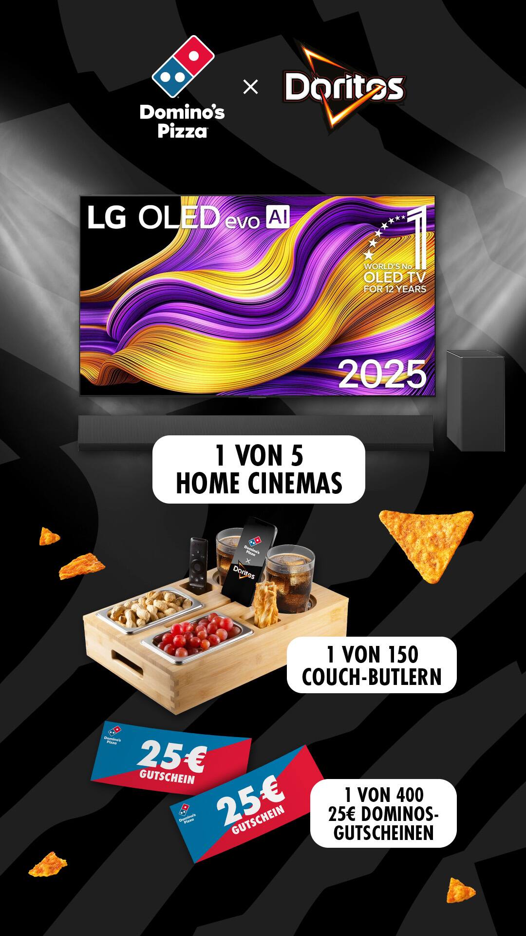 Die Übermittlung der Gewinne erfolgt durch die Brand Factory im Auftrag von PepsiCo. Domino’s übernimmt die Organisation der Auslosung, die Brand Factory das Fulfillment.