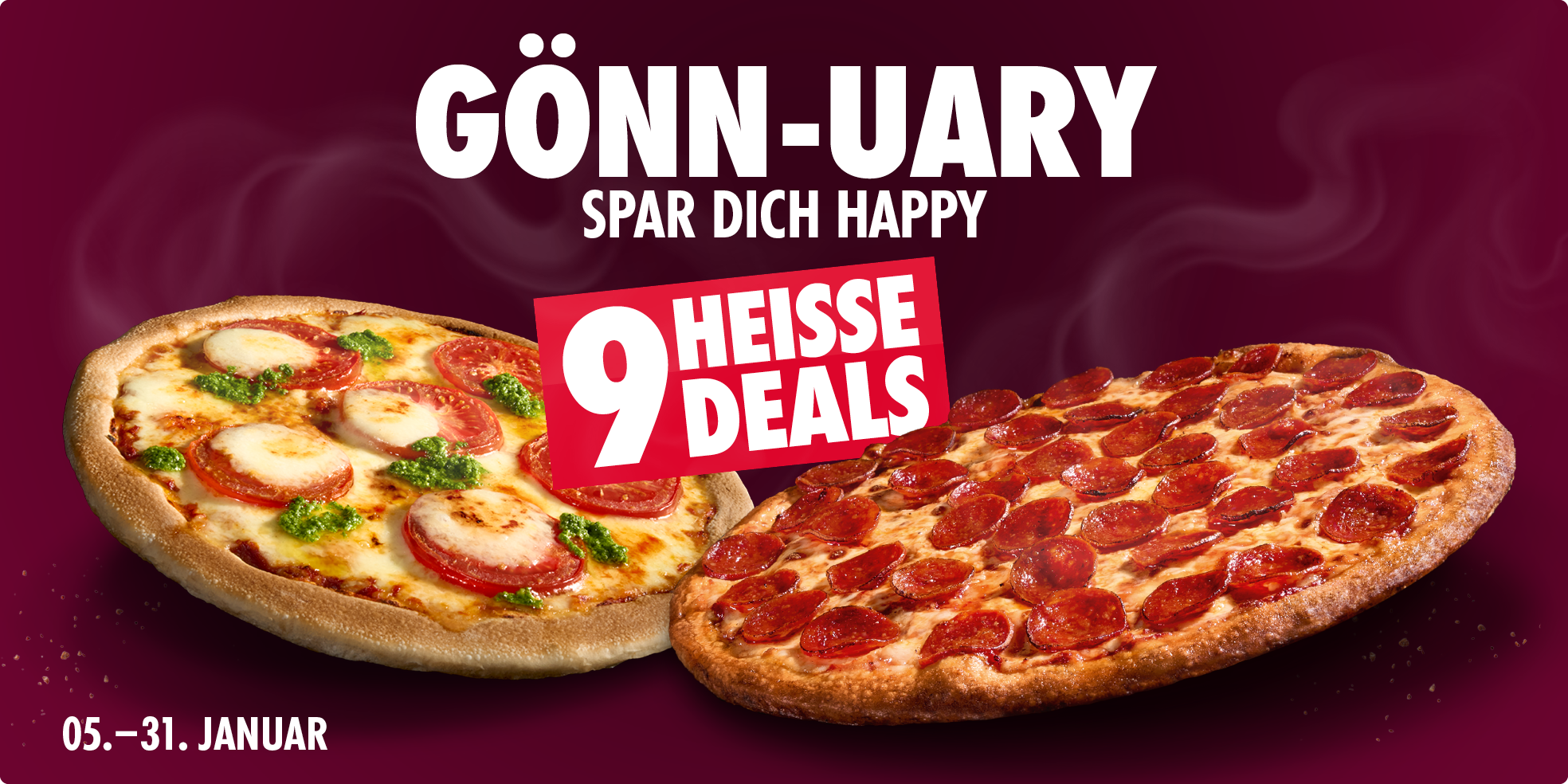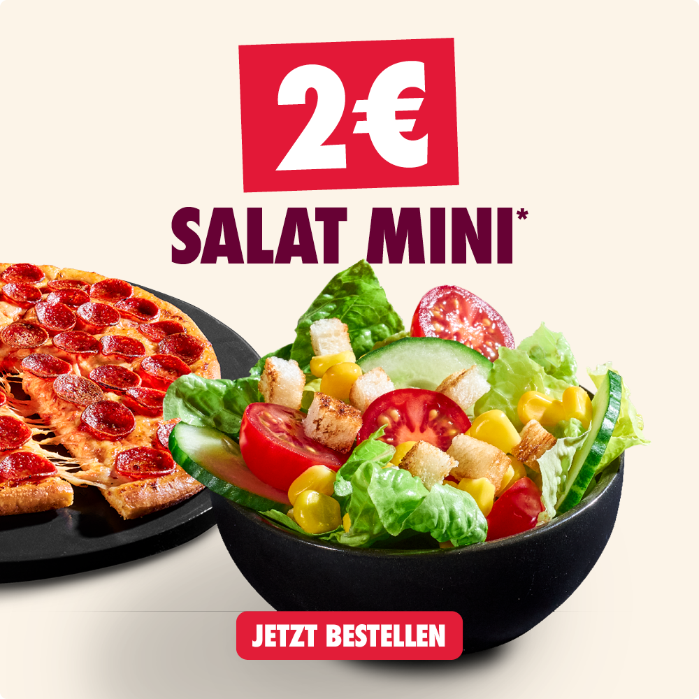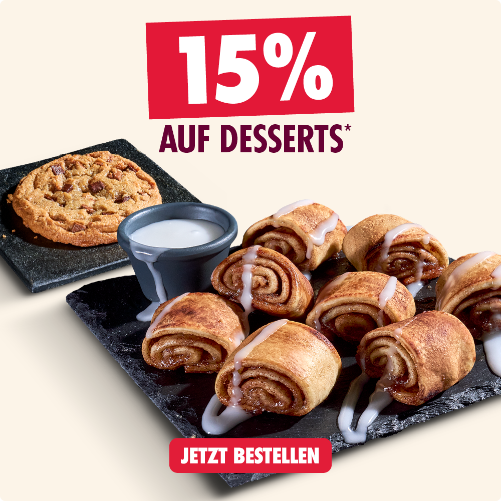 *Alle Codes online einlösbar auf dominos.de oder in der Domino's App in teilnehmenden Stores. Mindestbestellwert aller Deals 15€. Keine Barauszahlung, nicht kombinierbar. Pflichtangaben zu unseren Produkten unter https://www.dominos.de/produkte/pflichtinformationen oder frage unsere Mitarbeitenden. Änderungen/Irrtümer vorbehalten. Anbieter: Domino‘s Pizza Deutschland GmbH, GF: Alexander Tauer, Am Sandtorkai 75-77, 20457 Hamburg.